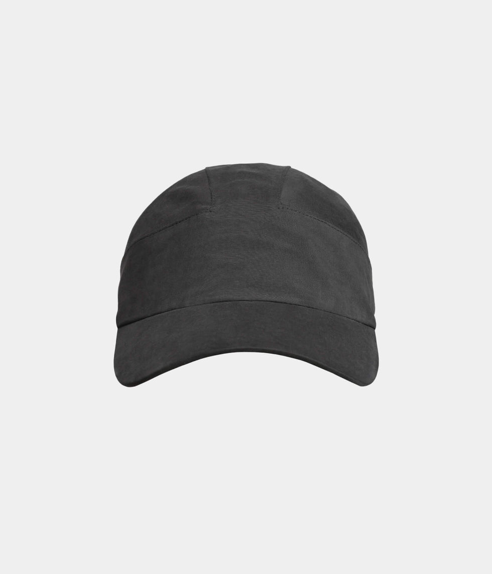 Cap crafted from water-repellent cotton blend with seam-taped construction. Unique one-panel pattern forming the full crown. Adjustable cordstopper closure, concealable into a hidden fold.